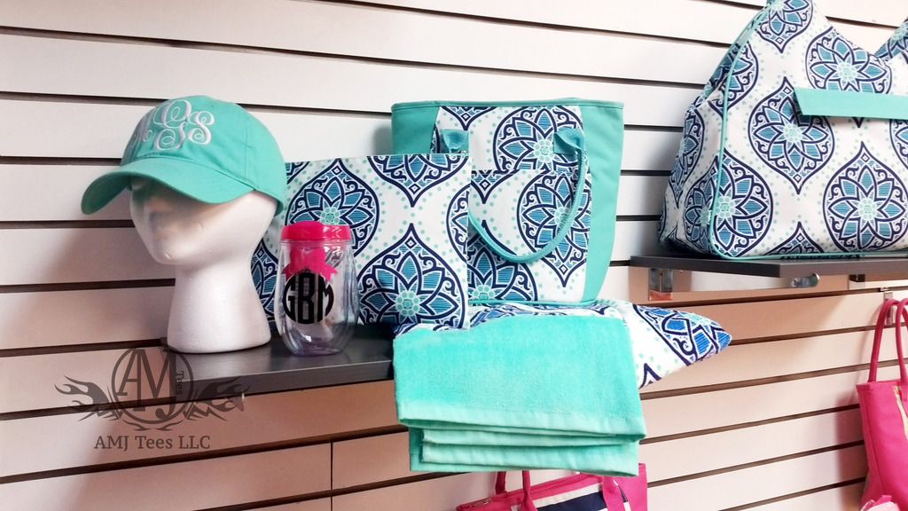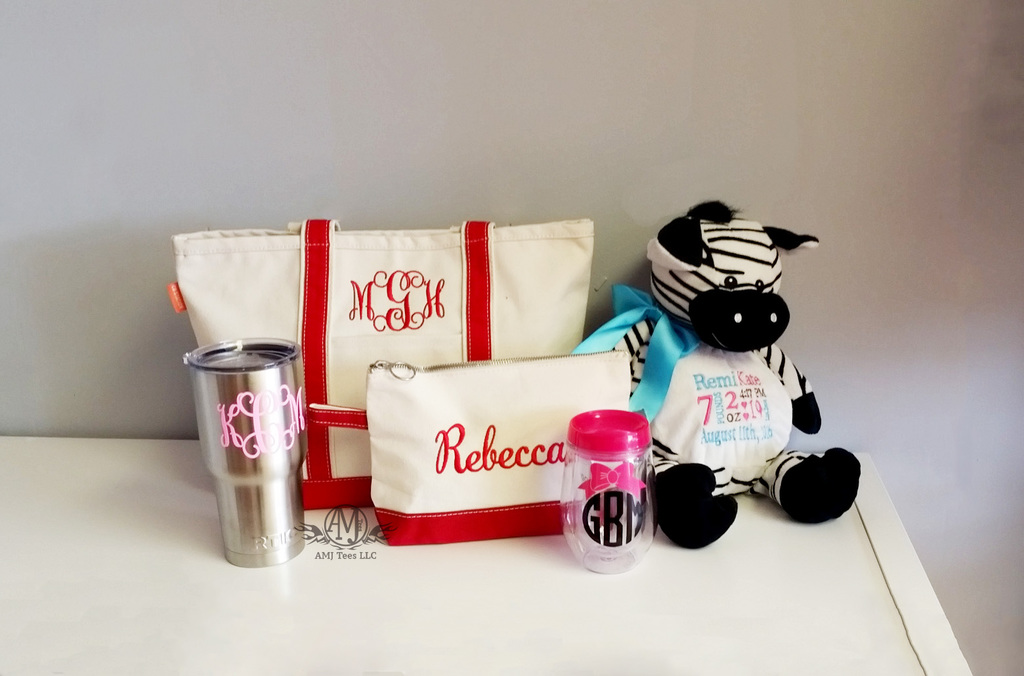 We offer personalized items like tote bags, aprons, hats, beach bags, towels, koozies, tumblers, and more. These items are perfect for a birthday gift, teacher gift, anniversary gift, Father’s day gift, or Mother’s day. Personalized stuffed animals make great new baby gifts. Personalized cosmetic bags, tumblers, tote bags, or monogram bathrobes are great ideas for bridesmaid gifts.